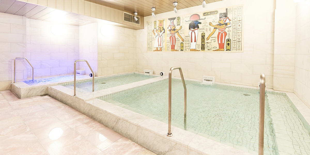 中伊豆から天然温泉を運搬して提供する露天風呂「神代の湯」を中心に、世界初の北欧サンゴライト化粧水風呂(女性専用)や、日本初のαトリノ水を使用した浴槽、週替わり風呂など、多彩な温浴体験を展開しています。